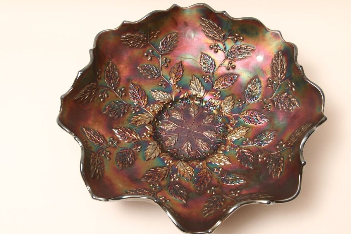 - 美術品・アンティーク・コレクション > 工芸品 > アメリカ製アンティーク 虹色に光るカーニバルグラス 角形ボウル【美品・稀少品】 アメリカ製アンティーク 虹色に光るカーニバルグラス 角形ボウル【美品