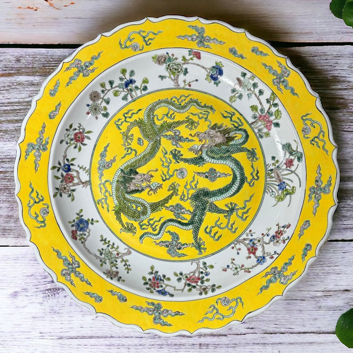 - 美術品・アンティーク・コレクション > 工芸品 > あきこ中国美術 色絵 龍紋皿 φ48.8cm(ZE473) 大清康熙年製 色絵【龍 雲 花 草】大皿 丸皿 中国美術 盛り皿 飾り皿