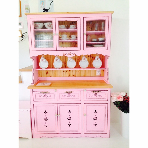 | メーカー | 食器棚カップボードセット オフピンク 収納力抜群 |