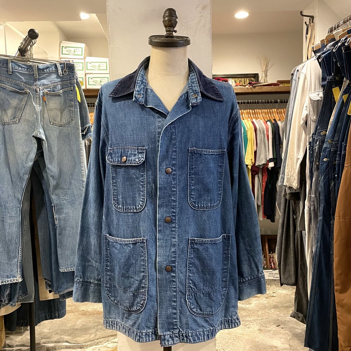 50s 60s Madewell カバーオール デニム 古着 ヴィンテージ 60s Madewell デニムカバーオール 襟コーデュロイ ワークジャケット 60