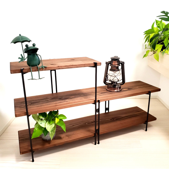 | 商品の特徴 | □□折りたたみ キャンプギア□□ 持ち運び楽らく 軽量 アウトドア。おしゃれ アイアンラック 幅120cm》軽量折りたたみ /キャンプ。アイアン ラダー ラック (2脚セット)》折りたたみ シェルフ イベント。【セット内容】 鉄脚1脚+板4枚 保護キャップ付 鉄脚は黒皮鉄クリア仕上げです。 【サイズ】 《全体の高さ》 左上段 80cm 右上段 63.5cm 《 板 (杉) 》 上段 各50cm(3枚) 下段 100cm (1枚) 奥行き 24cm 厚み 1.9cm※板はウォルナット色ですが、天然木ですので色は若干誤差がでてきます。 《 重さ 》 約 8㎏ 耐荷重//30㎏試して大丈夫でした各段の板の端っこに物を置いてもひっくり返らないようにしました。★☆左右を変更可能(無料)☆★ ご購入の際 備考欄に【左右反対に変更】とご記載ください。■□■□■□■□■□■□■□■□ ★観葉植物・多肉植物・エアプランツ・本棚★ ☆イベントやフリーマーケットの出店に☆ ★アウトドア・キャンプをおしゃれに★軽くて組み立ても簡単なので、様々なシーンで活躍できるアイアンラックです。 鉄(アイアン)と愛媛県の天然木を組み合わせ 【どこででもかっこよく&かわいく】見た目・耐久性・持ち運びできるetc, , , , ,に こだわって作りました。 ★☆★お願いごと★☆★全ての作品、1つひとつ手作りでご購入者様に喜んでご愛用していただけるように丁寧に製作し 検品して発送していますが万が一、初期不良がありました際は到着から3日以内にご連絡ください、初期不良以外での お客様都合による返品は受け付けておりません。手作業によるサイズの微妙な誤差 色のムラ かすれ等がある場合もございますことをご理解ください。。Amazonで買える!】便利でおしゃれなキャンプラックを紹介 | キャンプ。【東京都内23区配送無料】無印 ステンレスユニット メタルラック 棚 陳列 収納。無印 ステンレスユニットシェルフ。YS。アイアンシェルフ アイアンラック 多肉植物 アガベ ライトレールバー。無印良品 ステンレスユニットシェルフ 幅84cm ウォールナット【着払】。Montana モンタナ パントン ワイヤーシェルフ リプロダクト シルバー 3。KSK ガンロッカー CS型 2挺入れ | ||