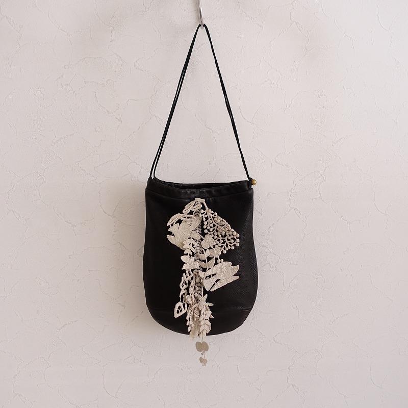 - レディース > バッグ > 美品 ミナペルホネン フォレストパレード 巾着バッグ レザー ブラック mina perhonen(ミナペルホネン) 【2022SS/定価3.8万】ミナペルホネン