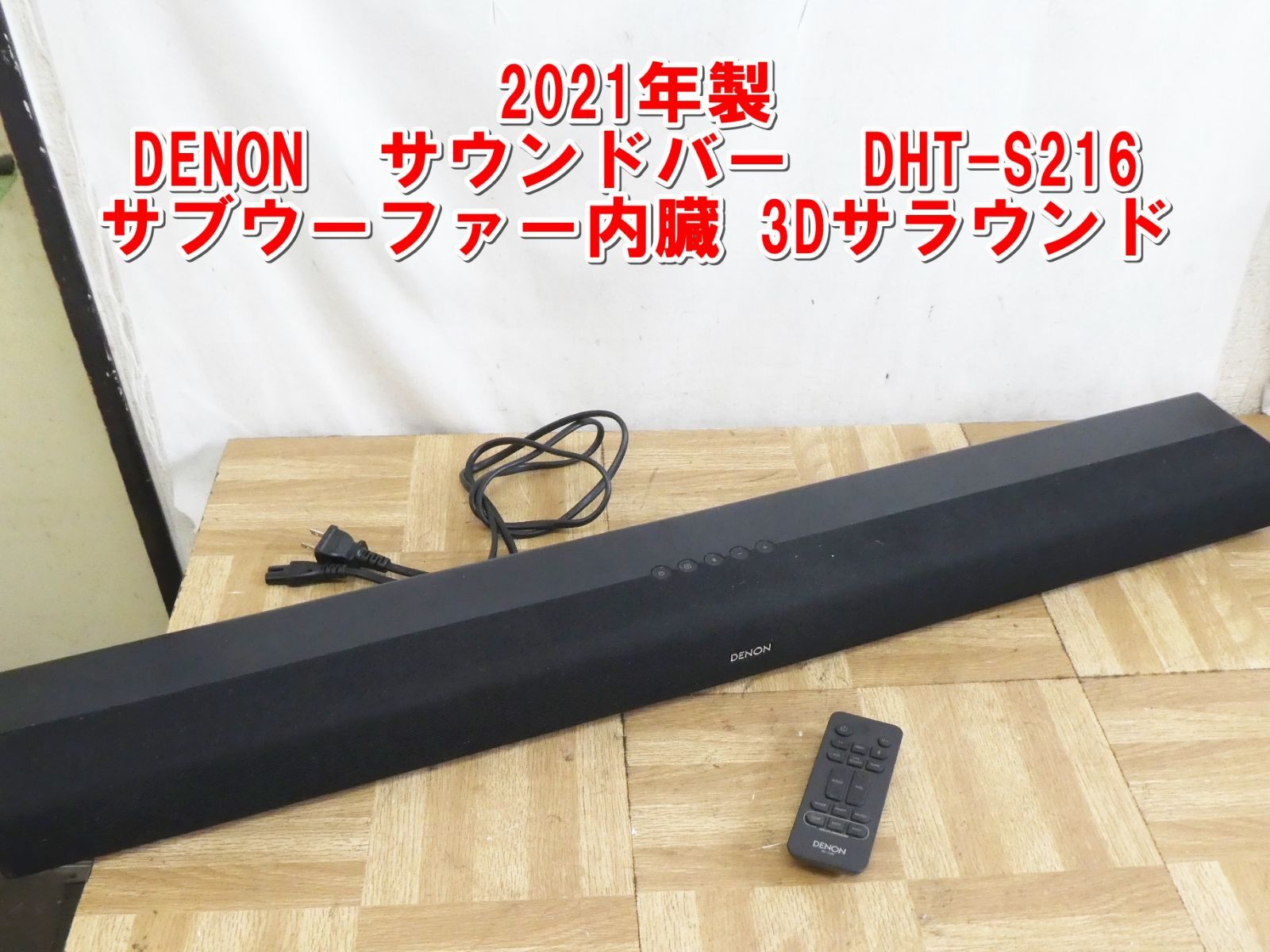 | 商品の特徴 | DENON DHT-S216 サウンドバー ウーハー テレビ パソコンスピーカー。DENON DHT-S216 サウンドバー ウーハー テレビ パソコンスピーカー。DENON DHT-S216サウンドバー2021年製。ご覧いただきありがとうございます。付属品は写真でご確認ください。・コンテンツやシチュエーションに合わせて選べる3つのサウンドモード(Music/Movie/Night)・人の声を強調して聴きやすくする「ダイアログエンハンサー」機能を搭載。DENON DHT-S216 サウンドバー ウーハー テレビ パソコンスピーカー。2020年に家電量販店で購入し3年ほど使用、その後保管していました。JBL FLIP7 Bold Sound 新品。Bose Wave® music system MODEL AWRCCB。●商品情報・バーチャル3Dサラウンド技術「DTS Virtual:X」対応の2.1chフロントサラウンドシステム。スピーカー・ウーファー harman/kardon Sound Stick Wireless。yamahaヤマハ NS-P350 スピーカーパッケージ ブラック。・メーカー/DENONデノン・型番/DHT-S216・HDMI端子/入力端子:1系統、出力端子:1系統(ARC対応)・サイズ/890x66x120 mm | ||