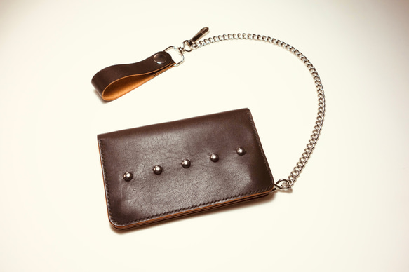 - ファッション小物 > 財布・ケース・小物入れ > ミニトラッカーウォレット チェーンセット ホースハイドレザー USA製スタッズ トラッカーウォレット ミニ財布 チェーン付き ホース