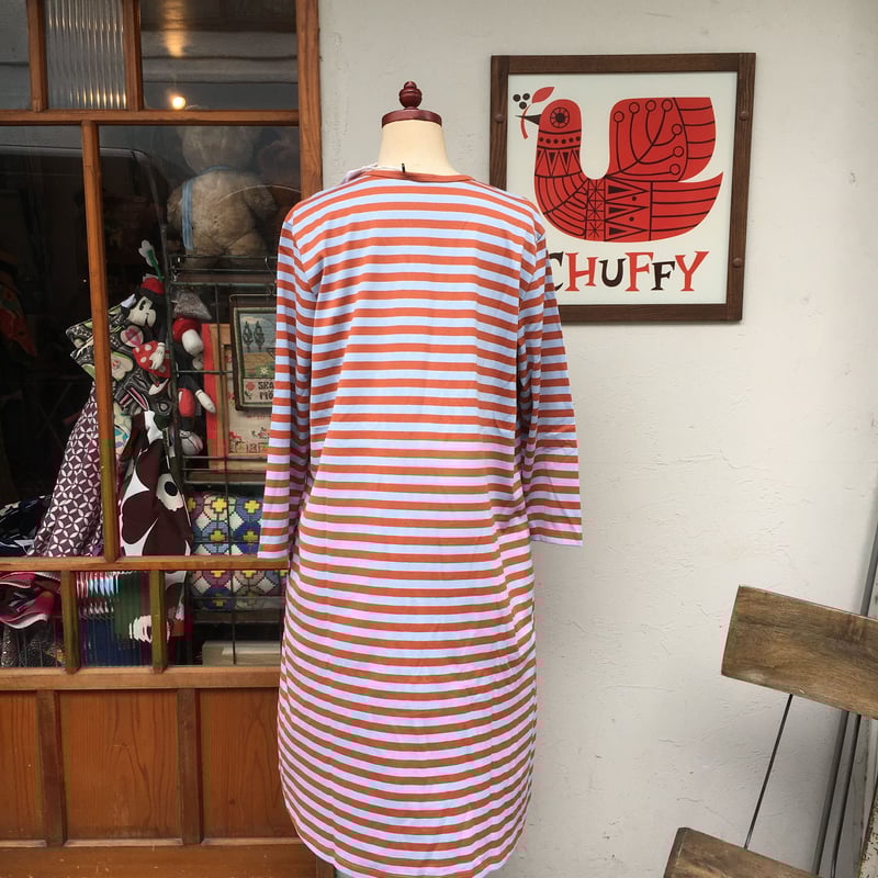 - レディース > ワンピース > 未使用 marimekko マリメッコ 七分袖 膝丈ワンピース 34 マリメッコ marimekko <aretta>七分袖ワンピース(オレンジXグレー